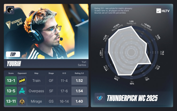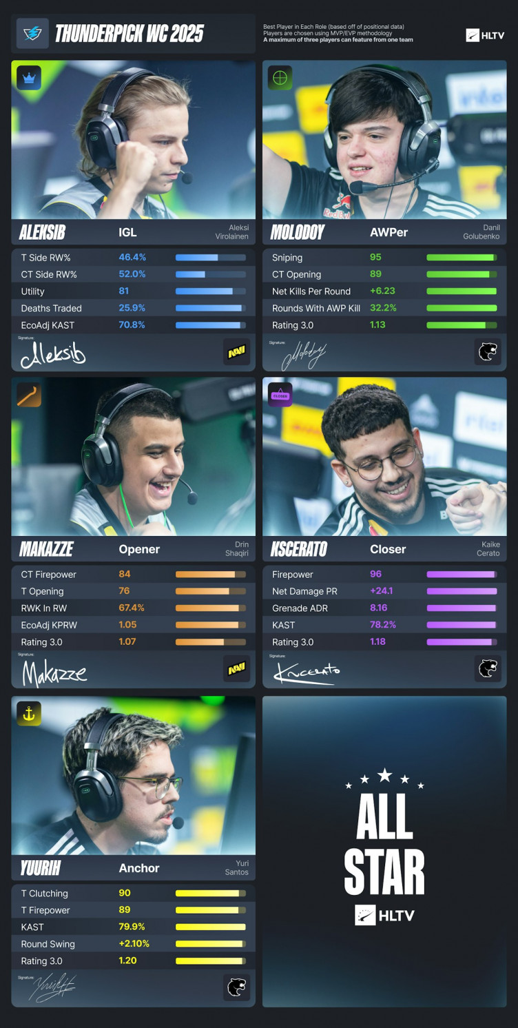 HLTV also presented an all-star roster of the best players from Thunderpick World Championship 2025 in each role – it features two representatives from NAVI and three players from FURIA.