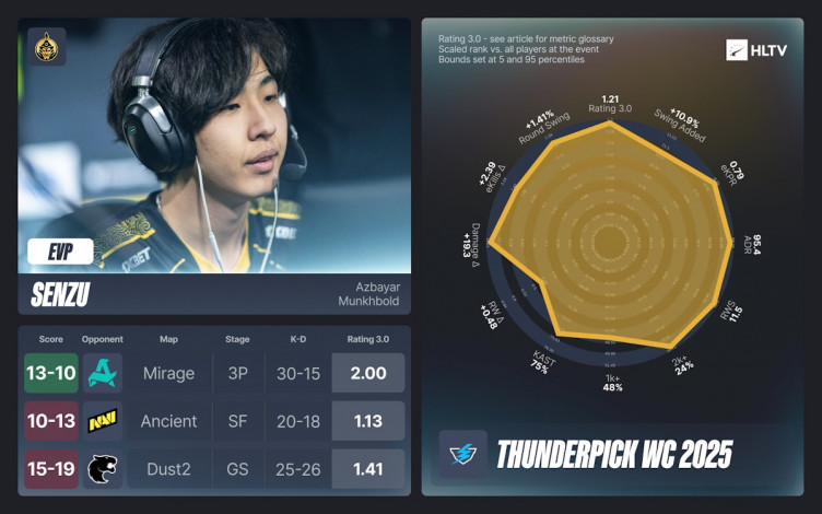 HLTV.org has published a list of esports athletes awarded the Exceptionally Valuable Player (EVP) title following the recent Thunderpick World Championship 2025 in Malta.