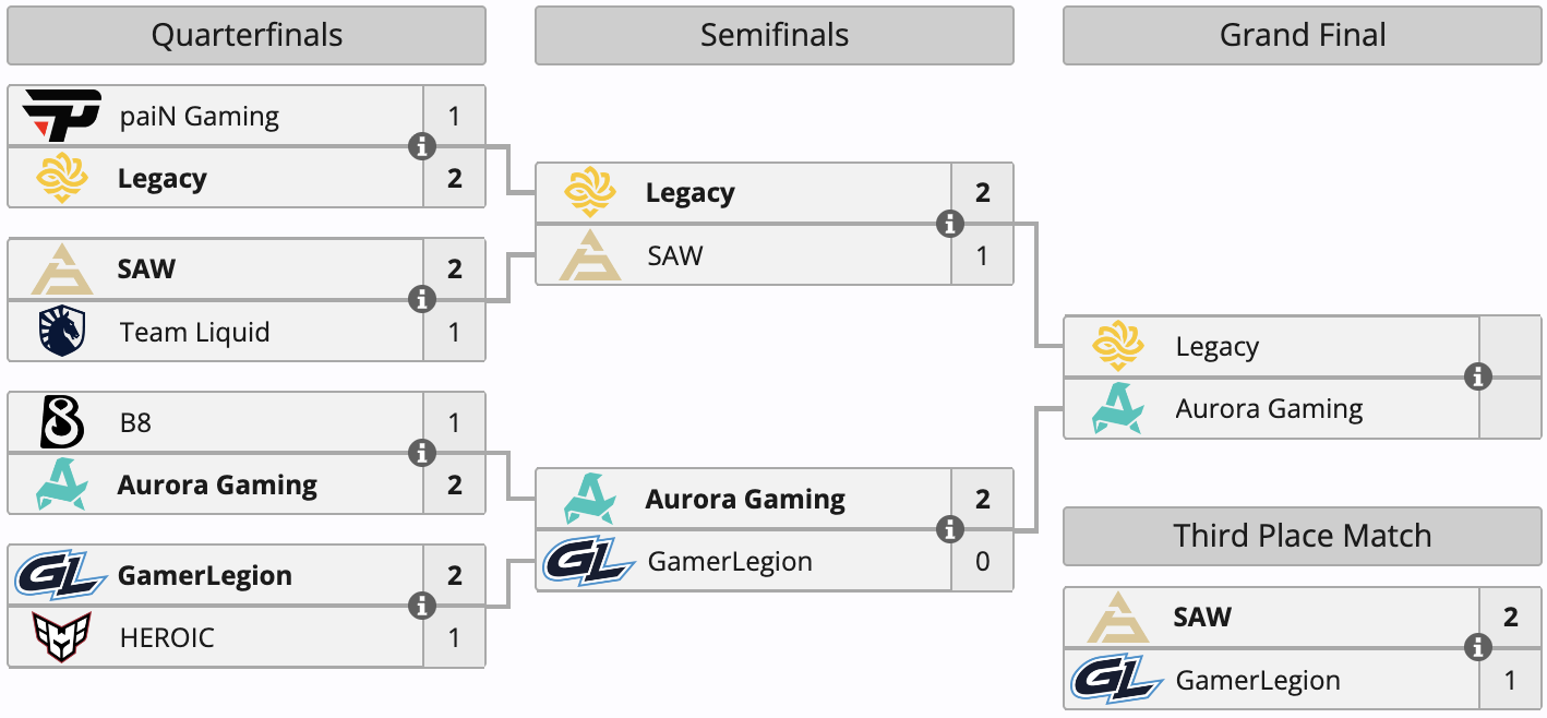 MUTiRiS and his teammates earned $75,000 in prizes, while GamerLegion's fourth-place win amounted to $43,750. Notably, SAW lost to Legacy in the event's semi-finals, while GamerLegion got bested by Aurora.