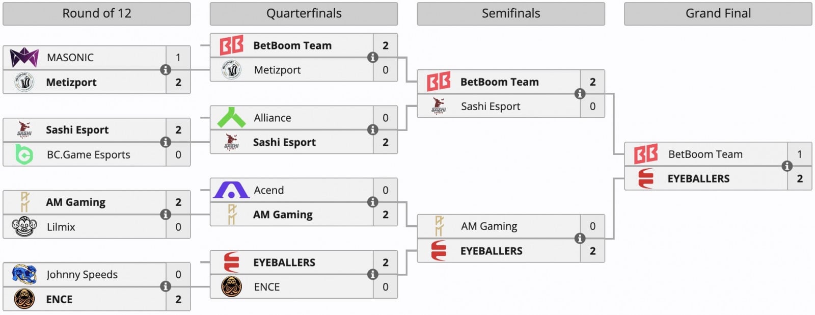 The competition took place from November 7th to 8th in Åre, Sweden. In the competition final, EYEBALLERS bested BetBoom Team with a scoreline of 2-1 (13-16 on Mirage, 13-10 on Ancient, 13-8 on Train).