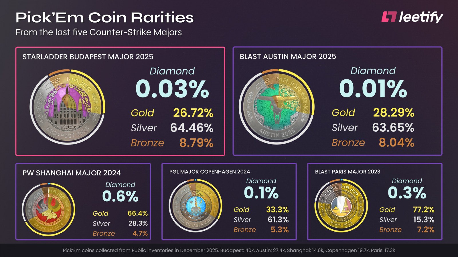 For comparison, at the previous BLAST.tv Austin Major 2025 in the US, 0.01% of players earned Diamond Coins, while 28% earned Gold.