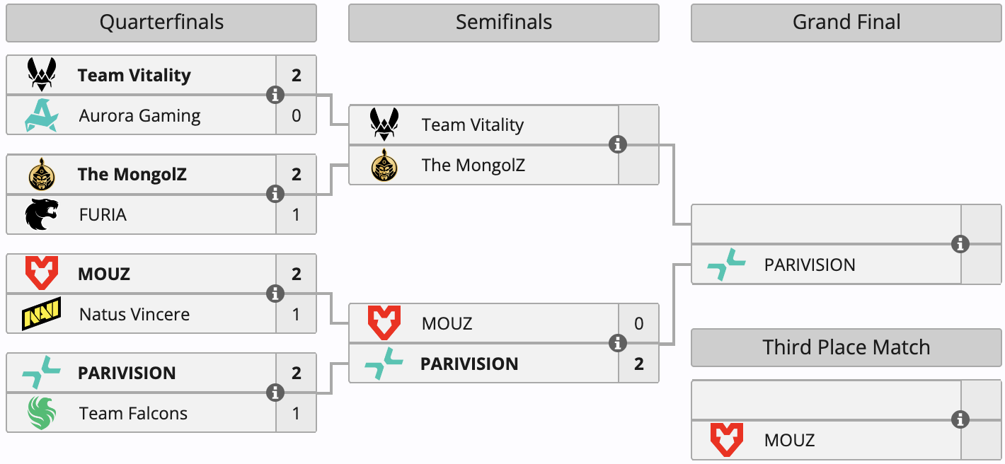 Next on the schedule is the second semi-final of PGL Cluj-Napoca 2026, where Vitality will face The MongolZ. The winner of this matchup will compete for the tournament title with PARIVISION tomorrow, while the loser will face MOUZ for third place.