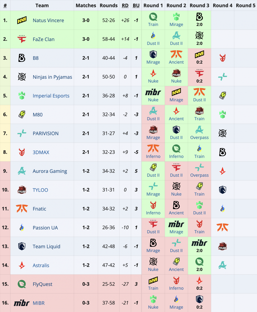 In the third round of Stage Two, FaZe defeated NIP, while NAVI bested B8. Both winners finished Stage Two undefeated and secured spots in the third stage.