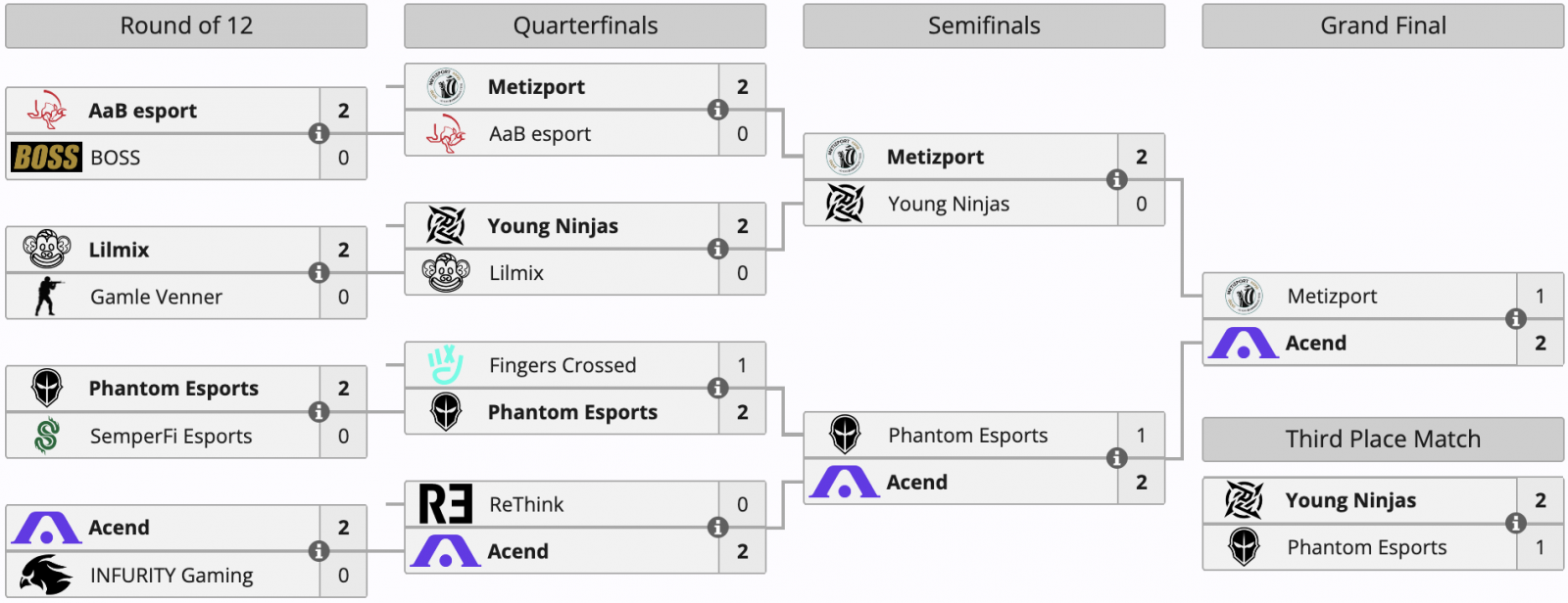 The competition took place from February 20th to 21st in Oslo, Norway, with 14 teams participating. In the competition final, Acend defeated Metizport with a scoreline of 2-1 (11-13 on Dust2, 13-11 on Inferno, 13-8 on Overpass), having previously bested Phantom, ReThink, and INFURITY.