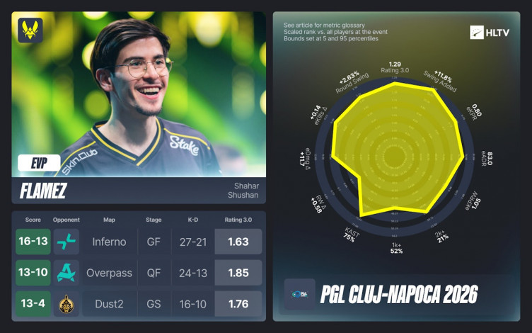 HLTV.org has published a list of esports athletes awarded the Exceptionally Valuable Player (EVP) title following the recent PGL Cluj-Napoca 2026 Counter-Strike 2 tournament in Romania.