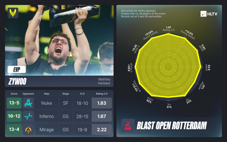 HLTV.org has published a list of esports athletes awarded the Exceptionally Valuable Player (EVP) title following the recent BLAST Open Rotterdam 2026 in Rotterdam.